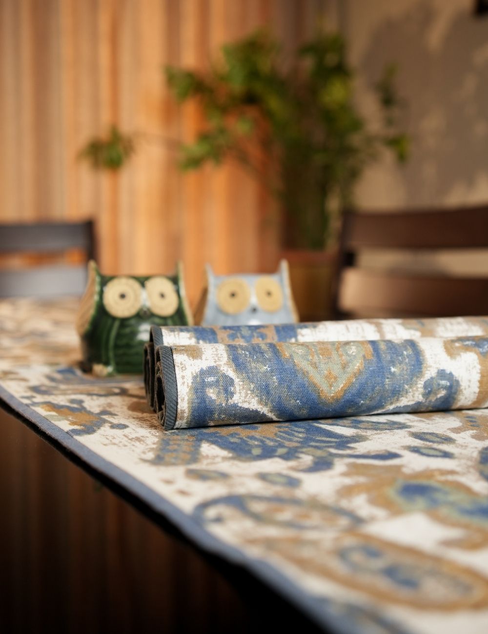 Blue Geometric Cotton Table Runner & Placemats