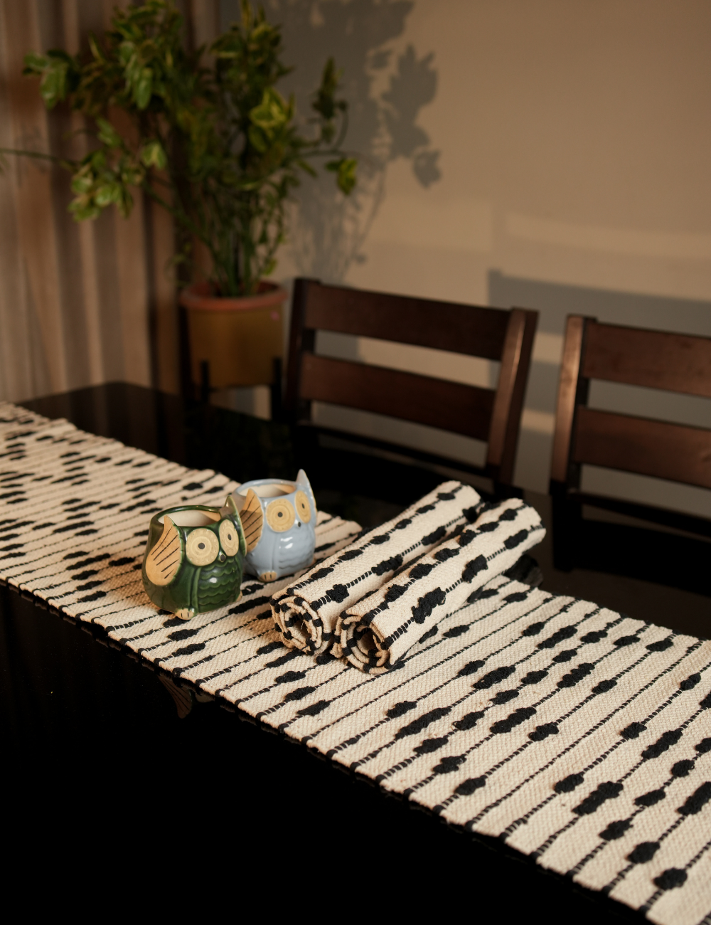 Create an effortlessly elegant tablescape with this Table Runner and Placemat Set. Designed with a bold geometric woven pattern, this set blends modern farmhouse and minimalist décor for a look that’s both trendy and timeless. The runner adds a striking centerpiece to your dining table, while the placemats provide functional protection from spills, scratches, and heat.